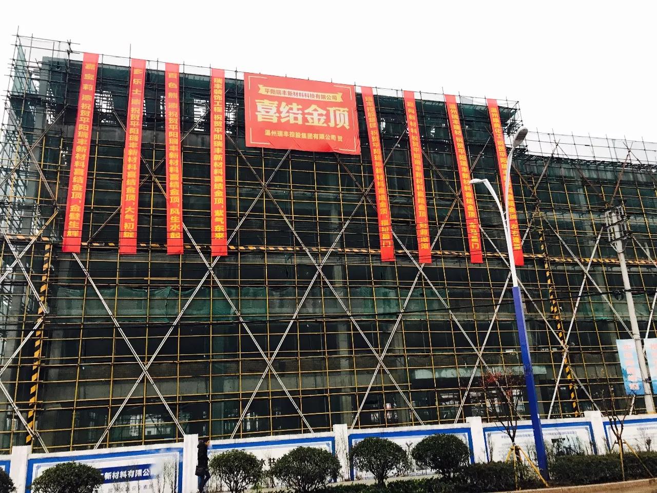 12月16日上午,伴随着最后一方混凝土的浇筑,平阳瑞丰新材料有限公司顺利结顶!工程建设将进入内部装修、设备调试阶段,预计2018