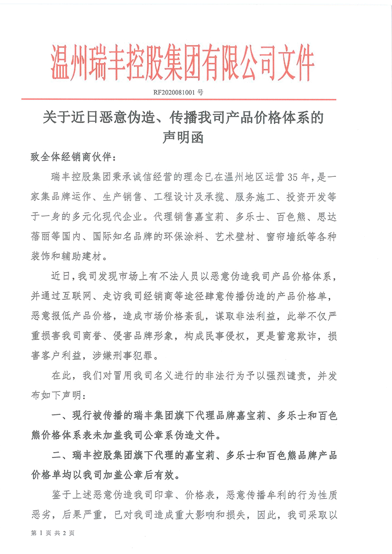 9月1日,瑞丰控股集团、康典化工携手嘉宝莉家具漆,组织开展主题为“绿色温州 水领风骚”嘉宝莉家具漆“油改水整体解决方案”研